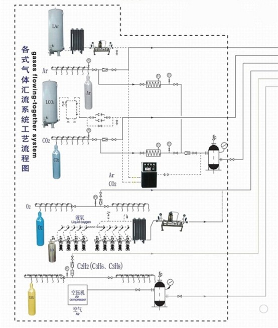 1、气源气源可以是液氧,也可以是高压氧气瓶。当气源是高压氧气瓶时,可根据用气需要选用2~20个氧气瓶。氧气瓶分为两组,一组供氧,另一组作备用。
